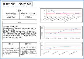 厚生労働省準拠の組織分析結果に対し、総合リスク度に応じたコメントを記載します。組織全体分析の他にオプションで部署別分析結果によるコメントも記載します。
